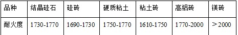 表 1-3 各材料的耐火度指標(biāo)(℃)