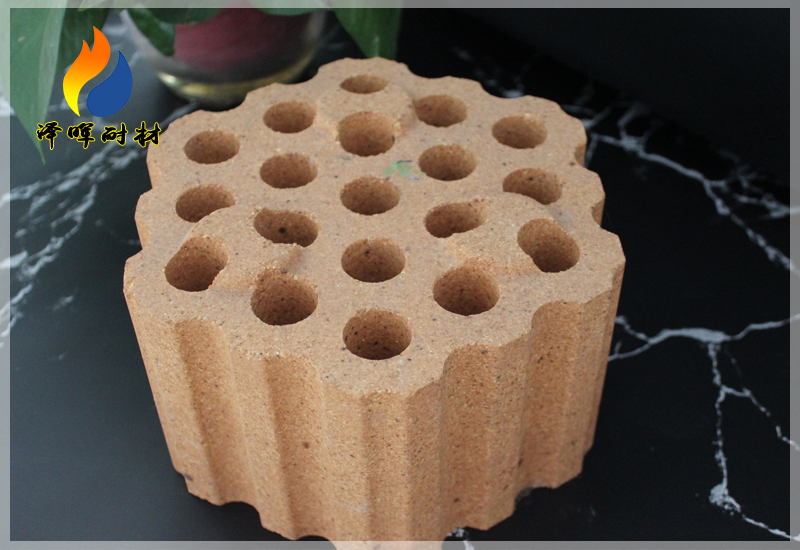 格子體砌筑用的格子磚又稱為花格磚,是指砌筑蓄熱室格子體所用的耐火磚。蓄熱室中高溫廢氣和預(yù)熱氣體進行熱交換(蓄熱和放熱)時的中間媒介體。要求格子磚有一定的抗侵蝕和抗熱震穩(wěn)定性能。常用的格子磚材料有耐火粘土磚、高鋁磚及鎂磚、鎂橄欖石磚、鉻鎂磚和鋯剛玉磚等。也可按格子體高度分段采用不同的磚材,從而改善格子體的使用性能。磚型可以采用標(biāo)準(zhǔn)型或特制的異形磚。